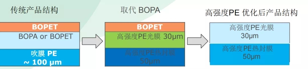 廣東威孚公司根據(jù)市場需求,已研發(fā)出高強度PE光膜、高強度PE熱封膜、高強度PE消光膜等產(chǎn)品。同時威孚公司還優(yōu)化該產(chǎn)品的熱封性能及結(jié)構(gòu)設(shè)計,擴寬起封區(qū)間溫度,能充分提高生產(chǎn)效率,材質(zhì)一體化, 響應(yīng)環(huán)??苫厥找?。